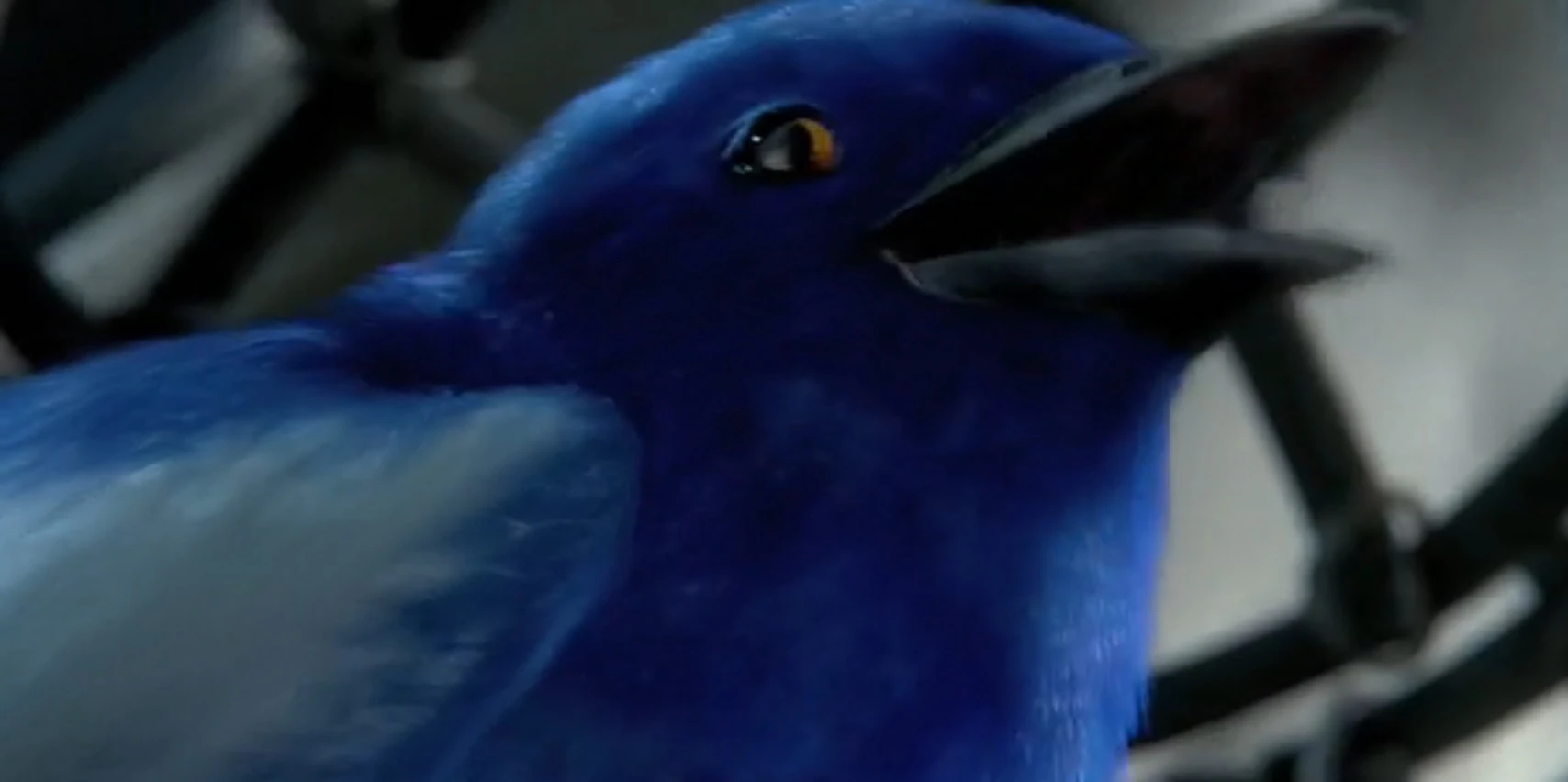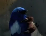 In the movie, a White-winged Fairywren briefly makes an appearance, and is used by Nyra as part of a training exercise. Its feathers are overall cobalt blue with white wing edges, and it has orange eyes.
